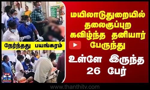Bus Accident | மயிலாடுதுறையில் தலைகுப்புற கவிழ்ந்த தனியார் பேருந்து - உள்ளே இருந்த 26 பேர்