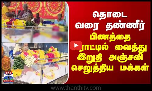 திருவள்ளூர் மாவட்டம் பொன்னேரி அடுத்த அத்திப்பட்டு புதுநகர் பள்ளம் பகுதியில், குடியிருப்புகளை மழைநீர் சூழ்ந்துள்ளதால், உயிரிழந்த முதியவரின் உடலை சாலையில் வைத்து அஞ்சலி செலுத்தி வருகின்றனர்..