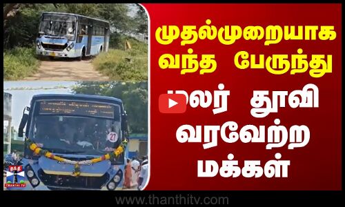 முதல்முறையாக வந்த பேருந்து மலர் தூவி வரவேற்ற மக்கள்