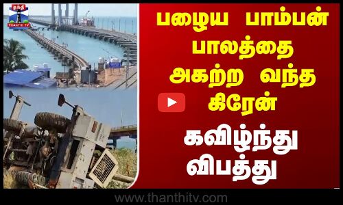 Rameswaram | பழைய பாம்பன் பாலத்தை அகற்ற வந்த கிரேன் கவிழ்ந்து விபத்து