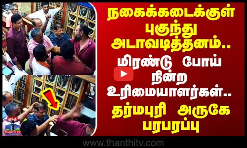 நகைக்கடைக்குள் புகுந்து அடாவடித்தனம்.. மிரண்டு போய் நின்ற உரிமையாளர்கள்.. தர்மபுரி அருகே பரபரப்பு