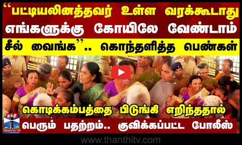 நாமக்கல் அருகே வீசாணத்தில் உள்ள மாரியம்மன் கோவில் திருவிழா திடீரென நிறுத்தப்பட்ட நிலையில், போலீஸ் பாதுகாப்புடன் பட்டியலின மக்கள் கோவிலில் வழிபட்டனர்.