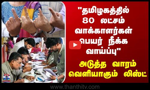 வரைவு வாக்காளர் பட்டியல் - 80 லட்சம் வாக்காளர்கள் நீக்கப்பட வாய்ப்பு? தமிழகத்தில் வருகிற 19ஆம் தேதி வெளியிடப்பட உள்ள வரைவு வாக்காளர் பட்டியலில் சுமார் 80 லட்சம் வாக்காளர் நீக்கப்பட வாய்ப்புள்ளதாக தகவல் வெளியாகியுள்ளன