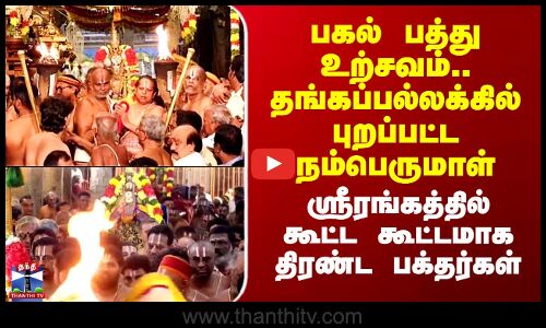 Srirangam|பகல் பத்து உற்சவம்..தங்கப்பல்லக்கில் புறப்பட்ட நம்பெருமாள்-ஸ்ரீரங்கத்தில் திரண்ட பக்தர்கள்