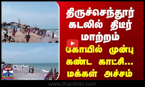 இந்த நிலையில் இன்று மதியம் சுமார் 3 மணி அளவில் திருச்செந்தூர் சுப்பிரமணிய சுவாமி கோயில் முன்பு உள்ள கடல் திடீரென சீற்றத்துடன் காணப்படுகிறது. இதனால் சுமார் 5 அடி உயரம் வரை கடல் அலைகள் எழும்புகின்றன.
