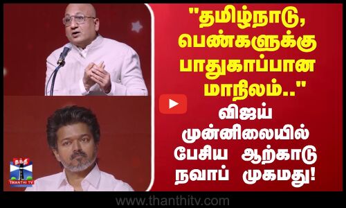 "தமிழ்நாடு, பெண்களுக்கு பாதுகாப்பான மாநிலம்.." விஜய் முன்னிலையில் பேசிய ஆற்காடு நவாப் முகமது!