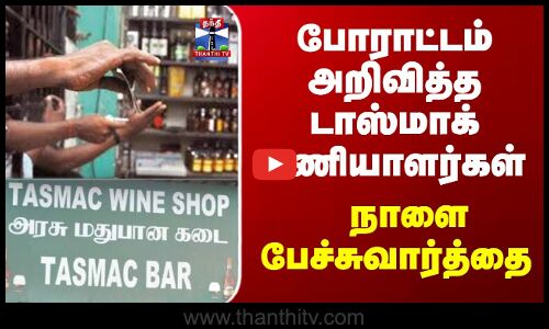 பணி நிரந்தரம், காலமுறை ஊதியம், ஓய்வூதியம் உள்ளிட்ட கோரிக்கைகளை வலியுறுத்தி டாஸ்மாக் பணியாளர்கள் போராட்டம் நடத்த திட்டமிட்டு இருந்தனர். அமைச்சர் முத்துசாமியுடன் பேச்சுவார்த்தை நடைபெற்ற நிலையில் மீண்டும் நாளை பேச்சுவார்த்தை நடக்க உள்ளது.