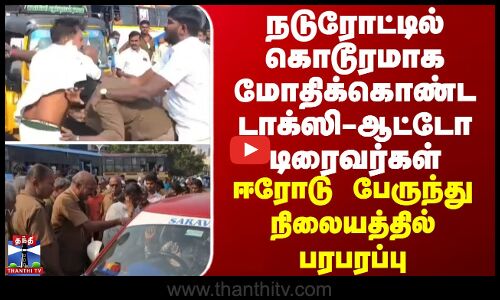 Erode நடுரோட்டில் கொடூரமாக மோதிக்கொண்ட டாக்ஸி-ஆட்டோ டிரைவர்கள்...ஈரோடு பேருந்து நிலையத்தில் பரபரப்பு