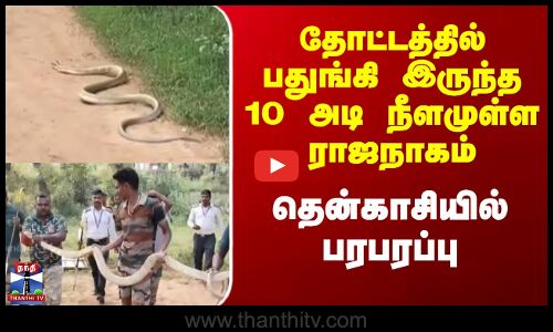 Tenkasi | தோட்டத்தில் பதுங்கி இருந்த 10 அடி நீளமுள்ள ராஜநாகம் தென்காசியில் பரபரப்பு