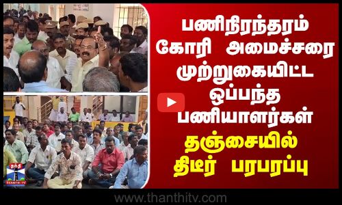 பணிநிரந்தரம் கோரி அமைச்சரை முற்றுகையிட்ட ஒப்பந்த பணியாளர்கள்... தஞ்சையில் திடீர் பரபரப்பு