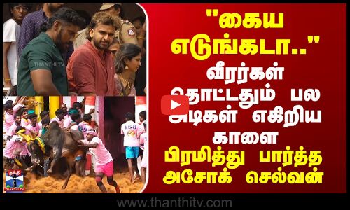 வீரர்கள் தொட்டதும் பல அடிகள் எகிறிய காளை - பிரமித்து பார்த்த அசோக் செல்வன்