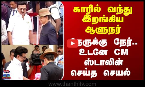 MK Stalin | RN Ravi | காரில் வந்து இறங்கிய ஆளுநர்.. நேருக்கு நேர்.. உடனே CM ஸ்டாலின் செய்த செயல்