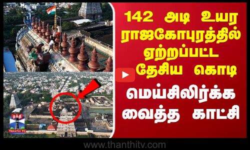 142 அடி உயர ராஜகோபுரத்தில் ஏற்றப்பட்ட தேசிய கொடி மெய்சிலிர்க்க வைத்த காட்சி..!