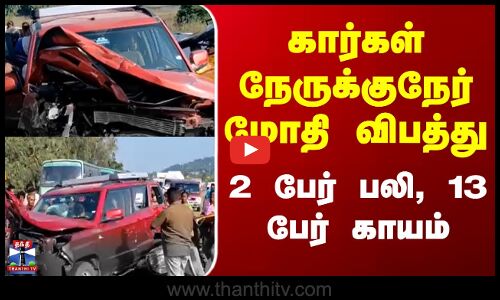கார்கள் நேருக்குநேர் மோதி விபத்து - 2 பேர் பலி, 13 பேர் காயம்
