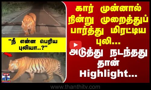 சாலைக்கு வந்த புலி வாகனம் முன்பு நின்று பார்த்துவிட்டு பின்னர் வனப் பகுதிக்குள் சென்றது. இதனை அவ்வழியாக சென்ற வாகன ஓட்டிகள் கண்டு ரசித்ததுடன் வீடியோ பதிவு செய்து இணையத்தில் பதிவிட்டுள்ளனர்.