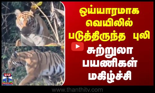 Tiger | ஒய்யாரமாக வெயிலில் படுத்திருந்த புலி சுற்றுலா பயணிகள் மகிழ்ச்சி