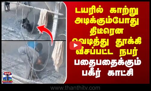 Tire Blast | டயரில் காற்று அடிக்கும்போது திடீரென வெடித்து தூக்கி வீசப்பட்ட நபர் -பதைபதைக்கும் காட்சி