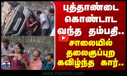 புத்தாண்டை கொண்டாட வந்த தம்பதிக்கு நேர்ந்த சோகம்.. தலைகுப்புற கவிழ்ந்த கார்..