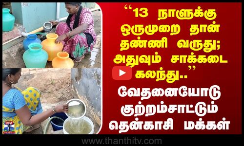 தென்காசி மாவட்டம் ஆலங்குளம் 13-ஆவது வார்டு பகுதியில் சாக்கடை கலந்த தண்ணீர் வருவதாக பொதுமக்கள் குற்றம்சாட்டியுள்ளனர். அதிலும், 13 நாட்களுக்கு ஒரு முறை மட்டுமே குடிநீர் வருவதாக கூறும் அவர்கள், இதைக் குடிப்பதால் குழந்தைகளுக்கு நோய்த் தொற்று ஏற்படுவதாக வேதனை தெரிவிக்கின்றனர். இதுகுறித்து பலமுறை பேரூராட்சியில் புகார் அளித்தும் நடவடிக்கை எடுக்கவில்லை என பொதுமக்கள் குற்றம்சாட்டுகின்றனர்.