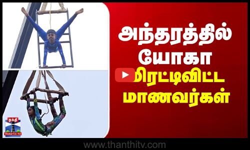 10க்கும் மேற்பட்ட தனியார் பள்ளி மாணவ, மாணவிகள் யோகா செய்து சாதனை படைத்துள்ளனர். கிரேன் மூலம் 60 அடி உயரத்தில் தொங்கியபடியும், கண்ணாடி பெட்டிக்குள்ளும் பலவிதமான ஆசனங்களை செய்து மாணவர்கள் அசத்தினர். இதனை, உலக சாதனை யூனியன் அமைப்பு பாராட்டி சான்றிதழ்கள் மற்றும் பதக்கங்களை வழங்கியது.