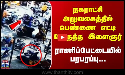 நகராட்சி அலுவலகத்தில் பெண்ணை எட்டி உதைத்த இளைஞர் | ராணிப்பேட்டையில் பரபரப்பு...