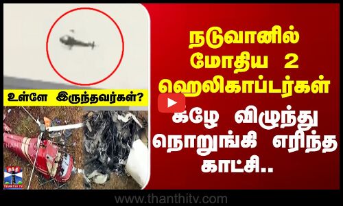 Helicopter Accident | நடுவானில் மோதிய 2 ஹெலிகாப்டர்கள் - கீழே விழுந்து நொறுங்கி எரிந்த காட்சி..
