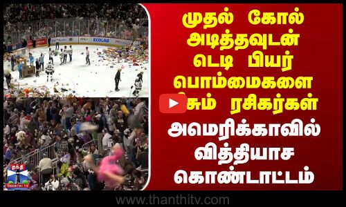 அமெரிக்காவில் நடந்த ஐஸ் ஹாக்கி போட்டியின்போது ரசிகர்கள் மைதானத்தில் டெடி பியர் Teddy Bear பொம்மைகளை வீசி உற்சாகமடைந்தனர். அமெரிக்காவின் பென்சில்வேனியா மாகாணம், ஹெர்ஷேயில் HERSHEY உள்ள மைதானத்தில், ஐஸ் ஹாக்கி லீக் போட்டி நடைபெற்றது. இதில் முதல் கோல் அடித்தவுடன் ரசிகர்கள் டெட்டி பியர் பொம்மைகளை மைதானத்தில் வீசுவது பாரம்பரிய நிகழ்வாகும். இதன்மூலம் திரட்டப்படும் நிதி, உள்ளூர் தொண்டு நிறுவனங்களுக்கு நன்கொடையாக வழங்கப்படும். அந்த வகையில், ஹெர்ஷே பியர்ஸ் Hershey Bears அணிக்காக விளையாடிய லூயி பெல்பீடியோ Louie Belpedio என்ற வீரர், முதல் கோல் அடித்தவுடன், மைதானத்தில் ரசிகர்கள் டெடி பியர் பொம்மைகளை வீசினர். இந்த ஆண்டு 81 ஆயிரத்து 796 பொம்மைகள் சேகரிக்கப்பட்டதாகவும், எனினும், கடந்த ஆண்டு சாதனையை முறியடிக்க முடியவில்லை என்றும் போட்டி அமைப்பாளர்கள் தெரிவித்தனர்.
