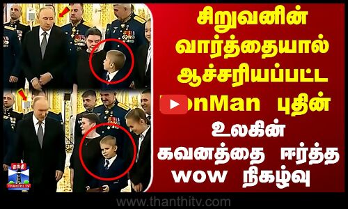 ரஷ்ய அதிபர் மாளிகைல நடந்த நிகழ்வு ஒன்னுல...அதிபர் புதின் லைட்டா இருமுனாரு... உடனே பக்கத்துல நின்ன சின்ன பையன்... Be healthy... அதாவது ஆரோக்கியமா இருங்கன்னு சொன்னதும் புதின் சிரிச்சுக்கிட்டே அந்த குட்டி பையனுக்கு நன்றி சொன்ன காட்சிகள் இணையவாசிகள கவர்ந்துருக்கு...