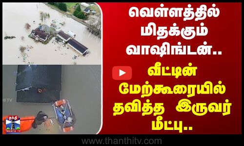 அமெரிக்காவின் வாஷிங்டன் மாகாணத்தில் மழை வெள்ளத்தால் வீட்டின் மேற்கூரையில் ஆதரவின்றி தவித்த இருவர் ஹெலிகாப்டர் மூலம் மீட்கப்பட்டனர். வாஷிங்டன் மாகாண வடமேற்குப் பகுதியில் பெய்த கனமழை காரணமாக வீடுகளை வெள்ளம் சூழ்ந்தது. வீதியெங்கும் வெள்ளக்காடாக மாறியதால், மொட்டை மாடியில் தஞ்சமடைந்த இருவர், ஹெலிகாப்டர் மூலம் கயிறுகட்டி மீட்கப்பட்டு, மருத்துவமனையில் அனுமதிக்கப்பட்டனர்.