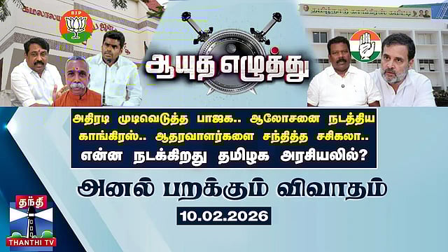ஆயுத எழுத்து | அதிரடி முடிவெடுத்த பாஜக.. ஆலோசனை நடத்திய காங்கிரஸ்.. ஆதரவாளர்களை சந்தித்த சசிகலா.. என்ன நடக்கிறது தமிழக அரசியலில்?