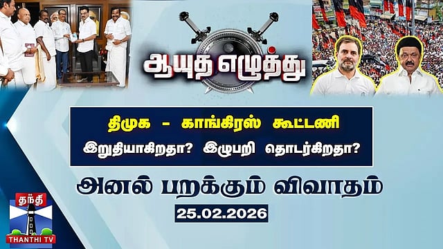 ஆயுத எழுத்து || திமுக - காங்கிரஸ் கூட்டணி: இறுதியாகிறதா? இழுபறி தொடர்கிறதா? (25.02.2026)