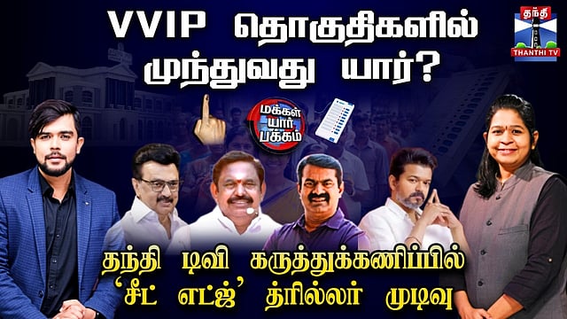 TN Election 2026 | VVIP தொகுதிகளில் முந்துவது யார்? - தந்தி டிவி கருத்துக்கணிப்பில் `சீட் எட்ஜ்' த்ரில்லர் முடிவு