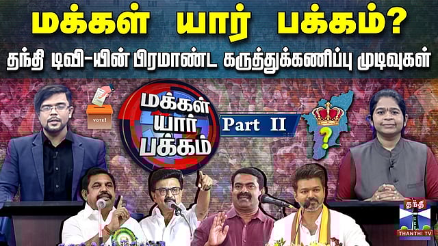 Part 2 : TN Election 2026 | Thanthi TV Opinion Poll 2026 | மக்கள் யார் பக்கம்? தந்தி டிவி-யின் கருத்துக்கணிப்பு முடிவுகள் Part 1 : https://youtu.be/D8KpjUbZvgQ Watch all Related Videos in playlist https://youtube.com/playlist?list=PL1SgYOQ8uzMR-ZrV5lX6y7gZc_xl7czVv #MakkalYaarPakkam #tnelection2026 #tamilnaduelection2026 #tnassemblyelection2026 #tamilnaduelection #tnelection #tnassemblyelection #assemblyelection #electioncommission #election2026 #electionswiththanthitv #thanthitv #therthalthiruvizha