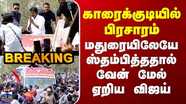 காரைக்குடியில் பிரசாரம் - மதுரையிலேயே ஸ்தம்பித்ததால் வேன் மேல் ஏறிய விஜய்