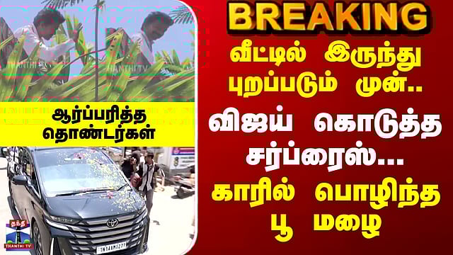 TVK Vijay | வீட்டில் இருந்து புறப்படும் முன் விஜய் கொடுத்த சர்ப்ரைஸ் - ஆர்ப்பரித்த தொண்டர்கள்