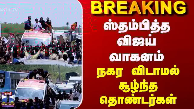 ஸ்தம்பித்த விஜய் வாகனம்.. நகர விடாமல் சூழ்ந்த தொண்டர்கள்