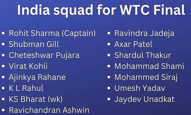 ஐசிசி டெஸ்ட் சாம்பியன்ஷிப் இறுதி போட்டிக்கான இந்திய அணி அறிவிப்பு