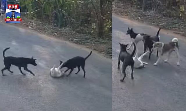 கேரளாவில் கல்லூரி வாகனம் மோதி நாய் படுகாயமடைந்து அலறியதைக்கண்டு சக நாய்கள் செய்வது அறியாமல் சாலையில் அங்கும் இங்குமாக ஓடிய சிசிடிவி காட்சி சமூக வலைதளங்களில் வைரலாகி வருகிறது