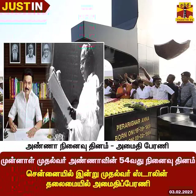 அண்ணாவின் 54வது நினைவு தினத்தை முன்னிட்டு சென்னையில் இன்று முதல்வர் ஸ்டாலின் தலைமையில் அமைதிப்பேரணி