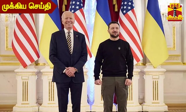தலைநகர் கீவ்-ல் உக்ரைன்-ரஷ்யா போர் ஒரு வருடம் நிறைவு நாளை அனுசரிக்கும் நிகழ்ச்சி .அமெரிக்க அதிபர் பிடன் பங்கேற்று 500 மில்லியன் டாலர் ராணுவ உதவிகளை வழங்குவதாக அறிவிப்பு
