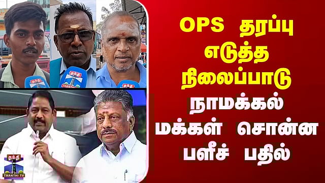 Street Interview | MLA Ayyappan | OPS தரப்பு எடுத்த நிலைப்பாடு - நாமக்கல் மக்கள் சொன்ன பளீச் பதில் #streetinterview #ops #assembly #dmk #thanthitv திமுக ஆட்சி தொடரும் - ஓபிஎஸ் ஆதரவாளர் பேச்சு எப்படி? எம்.ஜி.ஆர், ஜெ., ஆசியோடு என்று குறிப்பிட்டது சரியா? சட்டமன்றத்தில் பேசிய ஓபிஎஸ் ஆதரவு எம்.எல்.ஏ., ஐயப்பன், எம்.ஜி.ஆர் மற்றும் ஜெயலலிதா ஆசியோடு திமுக மீண்டும் ஆட்சி அமைக்கும் என்று பேசியிருப்பது குறித்து மக்கள் குரல் பகுதியில் எழுப்பப்பட்ட கேள்விகளுக்கு, நாமக்கல் மக்கள் தெரிவித்த கருத்துக்களைப் பார்க்கலாம்...