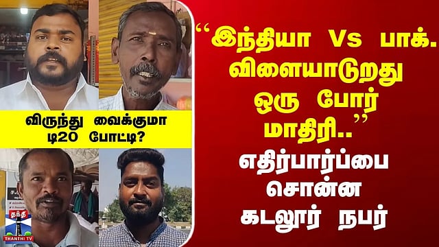 விருந்து வைக்குமா இந்தியா-பாக்., டி20 போட்டி? விறுவிறுப்பாகிறதா டி20 உலகக்கோப்பை கிரிக்கெட்? இந்தியா உடனான டி20 உலகக் கோப்பை கிரிக்கெட் போட்டியில் விளையாட பாகிஸ்தான் அணி சம்மதித்த நிலையில், கிரிக்கெட் ரசிகர்களுக்கு அது ஏற்படுத்தியிருக்கும் தாக்கம் குறித்து மக்கள் குரல் பகுதியில் எழுப்பப்பட்ட கேள்விகளுக்கு, கடலூர் மாவட்டம் திட்டக்குடி மக்கள் தெரிவித்த கருத்துக்களைப் பார்க்கலாம்...