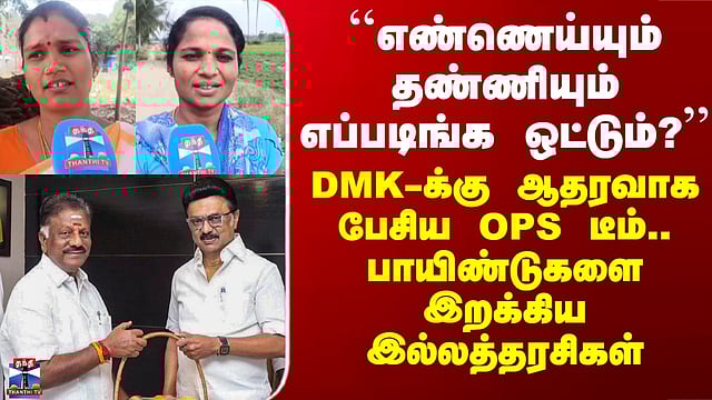 DMK-க்கு ஆதரவாக பேசிய OPS தரப்பு குறித்து இல்லத்தரசிகள் சொன்ன கருத்து சட்டமன்றத்தில் பேசிய ஓபிஎஸ் ஆதரவு எம்.எல்.ஏ., ஐயப்பன், எம்.ஜி.ஆர் மற்றும் ஜெயலலிதா ஆசியோடு திமுக மீண்டும் ஆட்சி அமைக்கும் என்று பேசியிருப்பது குறித்து மக்கள் குரல் பகுதியில் எழுப்பப்பட்ட கேள்விகளுக்கு, வேலூர் மாவட்டம் அணைக்கட்டு மக்கள் தெரிவித்த கருத்துக்களைப் பார்க்கலாம்...