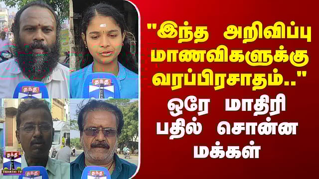 Street Interview | "இந்த அறிவிப்பு மாணவிகளுக்கு வரப்பிரசாதம்.." - ஒரே மாதிரி பதில் சொன்ன மக்கள் #streetinterview #thanthitv #budget2026 மாவட்டந்தோறும் மாணவிகள் விடுதி பயன் தருமா? மத்திய பட்ஜெட் அறிவிப்பு, மாணவிகளுக்கு உதவுமா? மாணவிகளின் கல்வியை ஊக்குவிக்கும் விதமாக, மாவட்டம் தோறும் மாணவிகளுக்கு விடுதி அமைக்கப்படும் என மத்திய பட்ஜெட்டில் வெளியான அறிவிப்பு குறித்து, மக்கள் குரல் பகுதியில் எழுப்பப்பட்ட கேள்விகளுக்கு, திருவண்ணாமலை மாவட்டம் வந்தவாசி மக்கள் தெரிவித்த கருத்துக்களைப் பார்க்கலாம்..