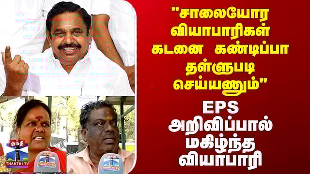 Thanthi TV Street Interview | Makkal Kural "சாலையோர வியாபாரிகள் கடனை கண்டிப்பா தள்ளுபடி செய்யணும்" - EPS அறிவிப்பால் மகிழ்ந்த வியாபாரி கடன் தள்ளுபடியால் சிறுவியாபாரிகளுக்கு மகிழ்ச்சியா? அதிமுக தேர்தல் அறிக்கை வெளிப்படுத்துவது என்ன? நடைபாதை சிறுவியாபாரிகளின் கூட்டுறவு கடன்கள் தள்ளுபடி செய்யப்படும் என்று அதிமுக தேர்தல் அறிக்கையில் தெரிவிக்கப்பட்டுள்ள நிலையில், அது குறித்து மக்கள் குரல் பகுதியில் மதுரை மக்கள் தெரிவித்த கருத்துக்களைப் பார்க்கலாம்..