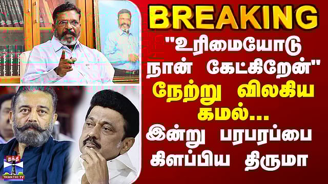 BREAKING || "உரிமையோடு நான் கேட்கிறேன்.." - நேற்று விலகிய கமல்... இன்று பரபரப்பை கிளப்பிய திருமா மநீம தேர்தலில் போட்டியிட வேண்டும் - திருமாவளவன்/"திமுக கூட்டணியில் மக்கள் நீதி மய்யம் போட்டியிடாமல் கூட்டணியை ஆதரிக்கும் நிலை ஏற்புடையதல்ல"/"சட்டமன்ற தேர்தலில் மக்கள் நீதி மய்யம் போட்டியிட வேண்டும்"/'வெல்வோம் ஒன்றாக' எனும் முழக்கம் முழுமையுற வேண்டும் - முதலமைச்சருக்கு, விசிக தலைவர் திருமாவளவன் வேண்டுகோள்
