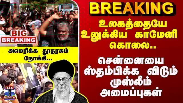 உலகத்தையே உலுக்கிய காமேனி கொலை.. சென்னையை ஸ்தம்பிக்க விடும் முஸ்லீம் அமைப்புகள் காமேனி கொலை - சென்னையில் ஆர்ப்பாட்டம் ஈரான் உச்ச தலைவர் காமேனி கொல்லப்பட்டதை கண்டித்து சென்னையில் உள்ள அமெரிக்க தூதரகத்தை முற்றுகையிட பேரணியாக புறப்பட்டுள்ளவர்களால் பரபரப்பு ஏற்பட்டுள்ளது...