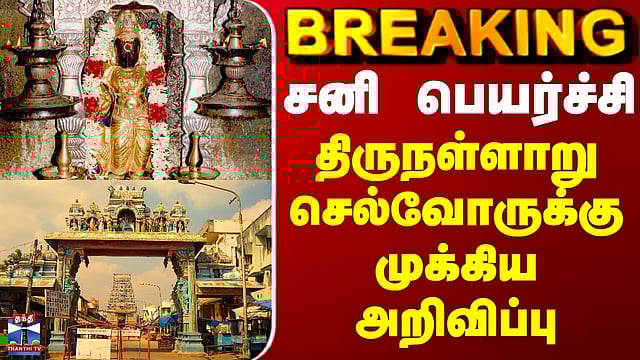 திருநள்ளாறு சனி பெயர்ச்சி - சிறப்பு முன்பதிவில்லா ரயில்கள் இயக்கம்/நாளை நடைபெறும் திருநள்ளாறு சனி பெயர்ச்சி - சிறப்பு ரயில்கள் இயக்கம்/நாளை, நாளை மறுநாள் தெற்கு ரயில்வே சார்பில் சிறப்பு ரயில்கள் இயக்கம்/விழுப்புரம் - திருநள்ளாறு - நாகப்பட்டினம் இடையே முன்பதிவு இல்லாத சிறப்பு ரயில்கள்/காலை 9.10 மணிக்கு விழுப்புரத்தில் புறப்படும் ரயில் மதியம் 1.05 மணிக்கு நாகப்பட்டினம் செல்லும்/மதியம் 1.20 மணிக்கு நாகப்பட்டினத்தில் இருந்து புறப்படும் ரயில் மாலை 5.30 மணிக்கு விழுப்புரம் செல்லும்