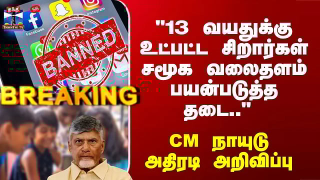 "ஆந்திராவிலும் சிறார்கள் சமூக வலைதளம் பயன்படுத்த தடை"/ஆந்திராவில் 13 வயதுக்கு உட்பட்ட சிறார்கள் சமூக வலைதளம் பயன்படுத்த தடை விதிக்கப்படும் என அறிவிப்பு/சிறார்கள் சமூக வலைதளம் பயன்படுத்த விரைவில் தடை விதிக்கப்படும் என முதல்வர் சந்திரபாபு நாயுடு அறிவிப்பு/சிறார்களுக்கான சமூக வலைதளம் தடை நடவடிக்கை 90 நாட்களில் தொடங்கும் எனவும் அறிவிப்பு/கர்நாடகாவை தொடர்ந்து ஆந்திராவிலும் சிறார்கள் சமூக வலைதளம் பயன்படுத்த தடை