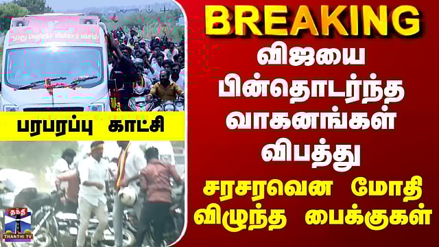 விஜயை பின்தொடர்ந்த வாகனங்கள் விபத்து.. சரசரவென மோதி விழுந்த பைக்குகள்